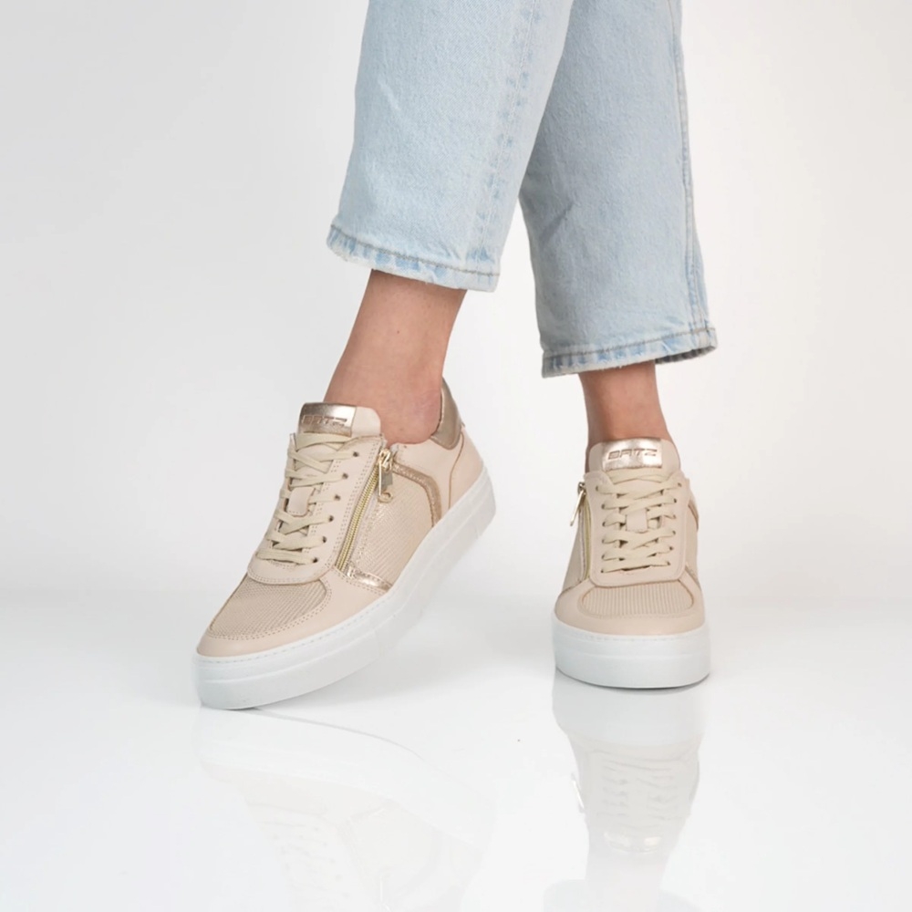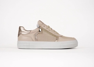 Az Ava sneaker valódi bőrből készült felsőrészével és annak csillogó részleteivel már az első pillantásra elvarázsol. A fűző és az elegáns aranyozott cipzárgondoskodik a tökéletes illeszkedésről és a divatos küllemről egyaránt. A cserélhető talpbetétnek köszönhetően akár kivételes szintre is emelhető a kényelem – egyedi talpbetét választásával.