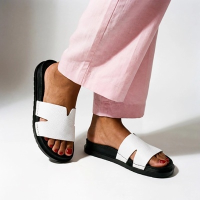 A fehér–fekete színösszeállítás igazi alapdarabbá teszi: könnyen kombinálható sportosabb és elegánsabb szettekhez is. Gyorsan felkapható, mégis csinos lábbeli: jól mutat fehér vászonnadrággal, fekete shorttal, farmerrel, oversized ingruhával vagy egyszínű nyári ruhákkal is.